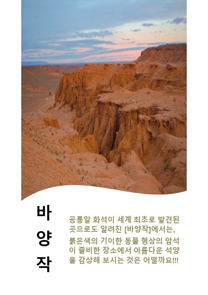 고비사막 / 알찬 몽골 남부 여행 / 대항항공 인천출발 / 풀패키지 / 맞춤식 일정 설계(전화문의)