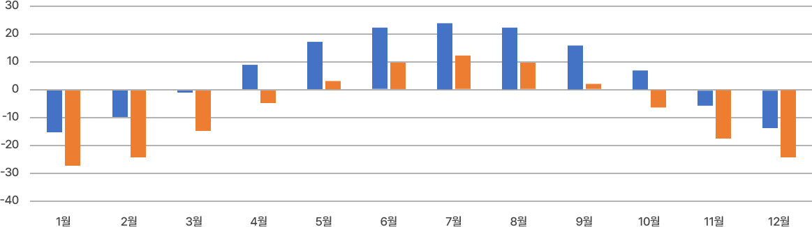 몽골 연중 평균 기온(표)